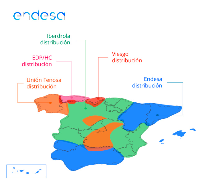 La compañía distribuidora es la que se ocupa de hacer llegar la energía a tu casa. No puedes elegirla y te corresponde una por zona. Tu distribuidora podría cobrarte por realizar cambios de potencia. A continuación puedes ver qué distribuidora corresponde a cada territorio: